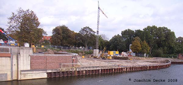 Das Wehr Oberwasser an dieser Stelle wird der Kraftwerkseinlauf entstehen.