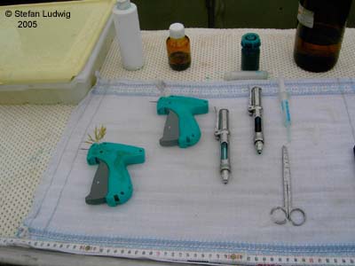Foto unten : der Bearbeitungsplatz für Farbmarkierung,