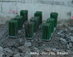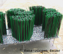 ![]() Bürsten vor dem Einbau (links) - der Zwischenraum unterhalb der Bürstensegmente wurde mit Schotter verfüllt um eine optimale Wanderung der Makroorganismen zu gewährleisten (unten).