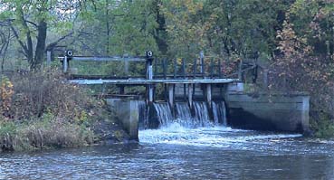 für Wanderfische. Wanderung flussabwärts: Über das Schützwehr eingeschränkt möglich aber auch über den Mühlenkanal - Bild rechts. Etwas flussabwärts von dieser Stelle hat es einen historischen Lachsfang gegeben (siehe Karte