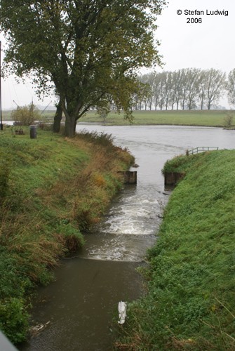 gegenüberliegenden Ufer des Kraftwerksauslaufes installiert und somit für
